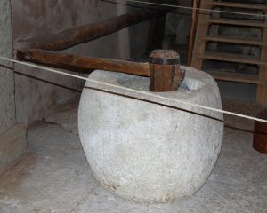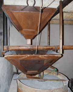 È in questo contesto che si colloca il molino dei Veraghi, testimonianza attualmente funzionante di un’antica economia contadina, basata sull’attività molitoria dei cereali provenienti dai territori della Valpolicella e Lessinia occidentale. La struttura faceva parte di un complesso di 17 molini, dislocati in serie lungo il ‘vajo‘, valle profondamente incassata sul cui fondo scorreva, e scorre tuttora, l’acqua delle sorgenti poste a monte dell’abitato. La presenza di acqua corrente perenne permetteva di far funzionare i mulini, trasformando l’energia idraulica in energia meccanica tramite una grande ruota con vaschette, situata all’esterno dell’edificio, e un insieme di ingranaggi e ruote dentate che trasferivano il movimento alla mola posta all’interno della struttura.