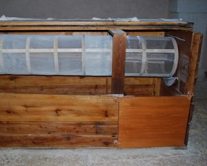 Il cereale macinato viene convogliato al setaccio (burato) per essere suddiviso a seconda delle dimensioni nelle sue frazioni. Il setaccio è un cilindro con struttura in legno rivestita di tessuto a maglie con luce di dimensione via via crescente; il macinato entra dalla parte con maglie più fini e scorre fino all’estremità opposta, dove la parte più grossolana, che non ha attraversato le maglie, esce e viene raccolta in una piccola cassa in legno. Il movimento circolare del burato viene fornito da un perno collegato direttamente allo scudo.